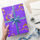 Gold Swirls and Stars Purple Christmas Wrapping Paper