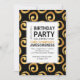 Gold Swirls on Black Modern Birthday Party Invitation