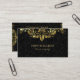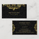 Elegant black floral damasks background with gold tones vintage swirly floral lace. Fully customisable double-sided business card template.
