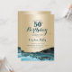 Teal and gold agate 50th birthday party invitation. Elegant modern design featuring watercolor agate marble geode background, faux glitter gold and typography script font. Trendy invite card perfect for a stylish women's bday celebration. Printed Zazzle invitations or instant download digital printable template.