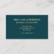 This simple, stylish, and elegant business card design features modern typography in luxurious gold on elegant teal background for a striking contrast. The clean, minimalist layout and the sans serif font ensure a professional and sophisticated look, making a lasting impression. The design allows for easy personalisation of the name, title, and contact details, offering a unique and refined statement that enhances your business presence. Perfect for professionals seeking a sleek and distinguished branding solution.