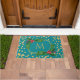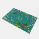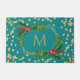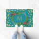 Gold Teal Monogram Merry Christmas Holly Glitter Doormat