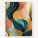 Waves and ovals in dark teal, dusty rose, peachy rose, and lined in gold create a beautiful and elegant spiral notebook. Perfect for the office, school, or home.