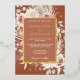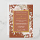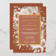 This Boho Gold Terracotta Floral Wedding Invitation is trending in a soft colour palette of terracotta, champagne and ivory earth tones with light blush pink and sage with real gold foil accents. It features beautiful detailed roses and florals with dried palms and eucalyptus greenery with faux gold accents on a terracotta background. This lovely colour palette is perfect for a spring, summer or fall wedding. Personalise with all of your wedding details.