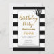 Gold Text Black and White Stripe 4th Birthday Invitation