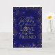 This modern and visually striking belated birthday greeting card is designed for a friend, inspired by the beauty of a night sky filled with shimmering gold dust and tiny heart details that resemble glowing stars. The deep, rich background creates a celestial and celebratory atmosphere, while the gold accents add warmth, sparkle, and elegance. The front features an artistic gold typography design that blends modern script lettering, decorative text elements, and expressive font styling, creating a bold and contemporary text effect. Inside the card, there is a sample photo that can be replaced or removed, along with space to write a personal belated birthday message and add your name. The entire card is fully customizable and editable, allowing easy changes to photo, text, and content. This photo greeting card is ideal for sending thoughtful belated birthday wishes to a friend in a modern, artistic, and memorable way.