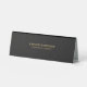 The elegant, simple, and minimalistic immigration attorney tent sign design features customisable gold typography on a black faux leather texture.