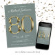 Gold Text Sage Classy 80th Birthday Party Invitation