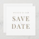 Sleek White with Gold Text Save the Date. Wedding. Contemporary & Modern. Simple. Square.