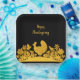 Beautiful Gold Thanksgiving Turkey Floral Paper Plate