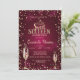 Gold tiara, champagne glass, and gold diamonds on burgundy background Sweet 16 birthday party invitation.