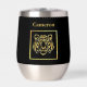 Stylish wine tumbler with a gold tiger face on a black background. It can be personalised with a name, initials or short text.