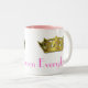 Fun ceramic mug, with graphics of shinny gold tone crowns. Pink text, along the bottom reads, I'm A Queen Everyday, and is customisable to read anything you want. Pretty mug for Her Royal Highness.