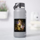 Jewelry, gold, musical treble clef with golden notes and stars on black glowing background.
