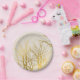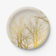 Gold Tree Branches Pattern Beige Background Paper Plate
