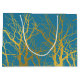 Gold Tree Branches Pattern Blue Background Large Gift Bag