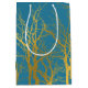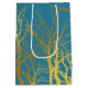 Gold Tree Branches Pattern Blue Background Medium Gift Bag