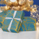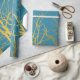 Gold Tree Branches Pattern Blue Background Wrapping Paper