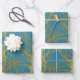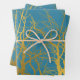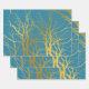 Gold Tree Branches Pattern Blue Background Wrapping Paper Sheet