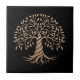 Gold Tree of Life Black Background Graphic Art Ceramic Tile