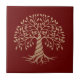 Gold Tree of Life Red Background Graphic Art Ceramic Tile