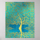 Gold tree and leaves on turquoise Peacock blue