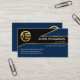 Over at the top corner is a creative faux gold global logo you can use. To the right of this lie your prestigious name and job title with a slogan caption underneath. Contact details in their respective gold buttons lie at the base of the card.