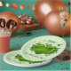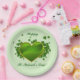 Set of eight 9” light green paper plates with an image of a gold-trimmed green heart surrounded by green shamrocks. Optional text. See matching candy jar, espresso cup, flask, pitcher, shot glass, teapot and coasters. See the entire St. Patrick’s Day Plate collection in the FOOD/BEV | Dishes section.