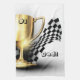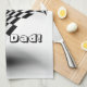 Gold trophy and black and white chequered flag for the winning dad for Father's Day - customisable text is #1 on the trophy and Dad! beside it- you can delete or change this text to anything you like.