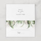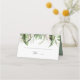 This gold tropical greenery wedding place card is perfect for a destination wedding. The design features hand-painted watercolor gold and green palm and banana leaves with pink flowers neatly arranged into beautiful bouquets.