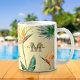 Gold Tropical Palm Foliage Floral Monogram Script Coffee Mug