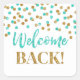 Welcome back stickers with Turquoise and Gold confetti pattern.