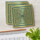 Gold turquoise green square optical illusion envelopes.