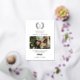 Elegant traditional save the date flat card in a gold and white typography design with a laurel wreath monogram and beautiful fonts. Typography wedding save the date with a greenery monogram and beautiful fonts and a photo of the couple. Photo save the date flat card with an elegant monogram and beautiful fonts and greenery details in black against a white background.