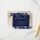 A modern, chic and elegant yellow gold typography Floral navy blue watercolor Christmas winter details wedding with hand painted blue watercolor leaf foliage on an elegant gold background with white snow and snowflakes.