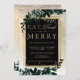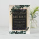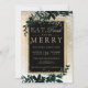 Eat, drink and be merry! A modern, chic and elegant gold typography Floral green watercolor Christmas party invitation with hand painted green watercolor leaf foliage on a chic yellow gold gradient with white snow and snowflakes. Perfect for Christmas or weddings.
