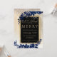 Eat, drink and be merry! A modern, chic and elegant gold typography Floral navy blue watercolor Christmas party invitation with hand painted blue watercolor leaf foliage on a chic yellow gold gradient with white snow and snowflakes. Perfect for Christmas or weddings.