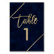 Gold typography on navy blue watercolor and faux gold geometric stripes chic table number wedding , perfect for elegant, chic wedding,