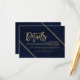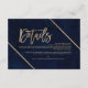 Gold typography on navy blue watercolor and faux gold geometric stripes chic wedding directions and details , perfect for elegant, beach wedding,