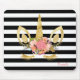 Gold Unicorn Face,Black White Stripes Mouse Pad
