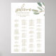 This gold veined eucalyptus alphabetical seating chart poster is perfect for an elegant wedding. This sign can be used to organise your guests alphabetically or by table number. The simple and dainty design features faux gold glitter layering the branches of olive green leaves. This wedding poster includes enough room for up to about 120 guests. Make room for more (or less) guests by clicking the "customise" button and decrease or increase the size of the font. In addition to the placement of each guest, personalise this sign with the names of the bride and groom and the wedding date.