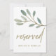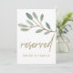 This gold veined eucalyptus "reserved" sign is perfect for an elegant wedding. The card is double sided (prints on both sides). The simple and dainty design features faux gold glitter layering the branches of olive green leaves. Use these cards to reserve chairs or tables at your wedding ceremony, reception or any event.