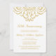 This elegant, vintage anniversary party invitation features a delicate gold damask embellishment on a white background.