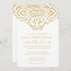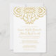 This elegant, vintage wedding invitation features a delicate gold damask embellishment on a white background. Perfect for a vintage glam or art deco themed wedding.