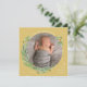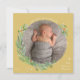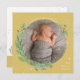 Theme Parties' Christmas greenery holiday photo card design features hand-painted watercolor greenery in a gold circle wreath set on a gold background. Your image is framed simply and the design is accented with watercolor speckles and matching holly berries. #Christmas #Holidays #ChristmasCards