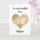 A personalised niece birthday card that features a pretty gold heart. You can personalise gold heart with the age you need and add her name underneath the heart. The inside card message reads "I hope that today and every day is filled with lots of love, laughter & fun. I love you. Happy 18th Birthday!" The card message can also be easily edited. The back of this gold heart card reads Happy Birthday.