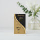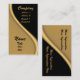Professional custom business cards with gold swirling wave design with black text and black background with gold text. Two sided with room to add more text.