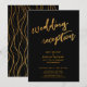 Gold Waves & Handwriting Black Wedding Reception Invitation