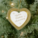 This is an elegant ornament to celebrate a couple's 50th Wedding Anniversary, either at the time of the celebration or for Christmas. It features a white heart framed in faux gold metal on a faintly striped metallic gold background. Inside the white heart is your text in matching gold, plus twinkling gold star images. The text is fully customisable, so you may make it say whatever you'd like. There is a 2nd text field on the back, which has the same gold border and inside image. This is a special family keepsake gift that will be treasured forever. *Please note - the image is printed, and the ornament does not contain metal or glitter.*