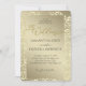 This elegant gold damask wedding invitation showcases a luxurious ornate border framing the front page with classic wedding details in refined fonts. The back page offers space for your initials, a custom monogram, or a personal photo, blending timeless golden elegance with a modern personalised touch.